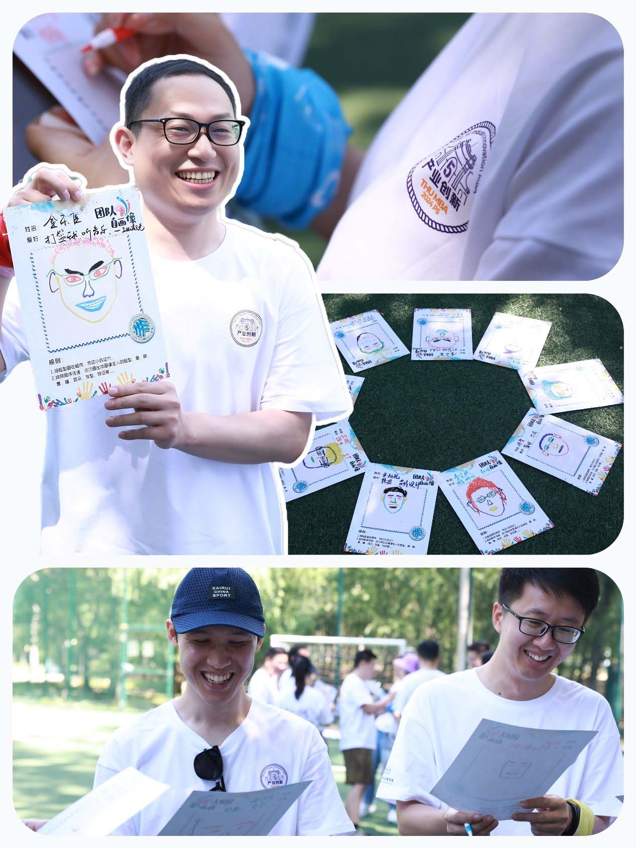 画纸轮过一圈,画像初现成果。有的同学自觉被捕捉到了“精髓”,便迫不及待地去别的小组“显摆”;有的同学则玩笑着责怪队友没有画出自己的“盛世美颜”。有的同学开始各处比看,试图评出全场最佳;有的同学则开始复盘刚才的下笔应该更加大胆……一时间,现场竟分不清是画作品鉴大会,还是比赛前的小组预热。大家也在热络的交流中更深入地认识了彼此。